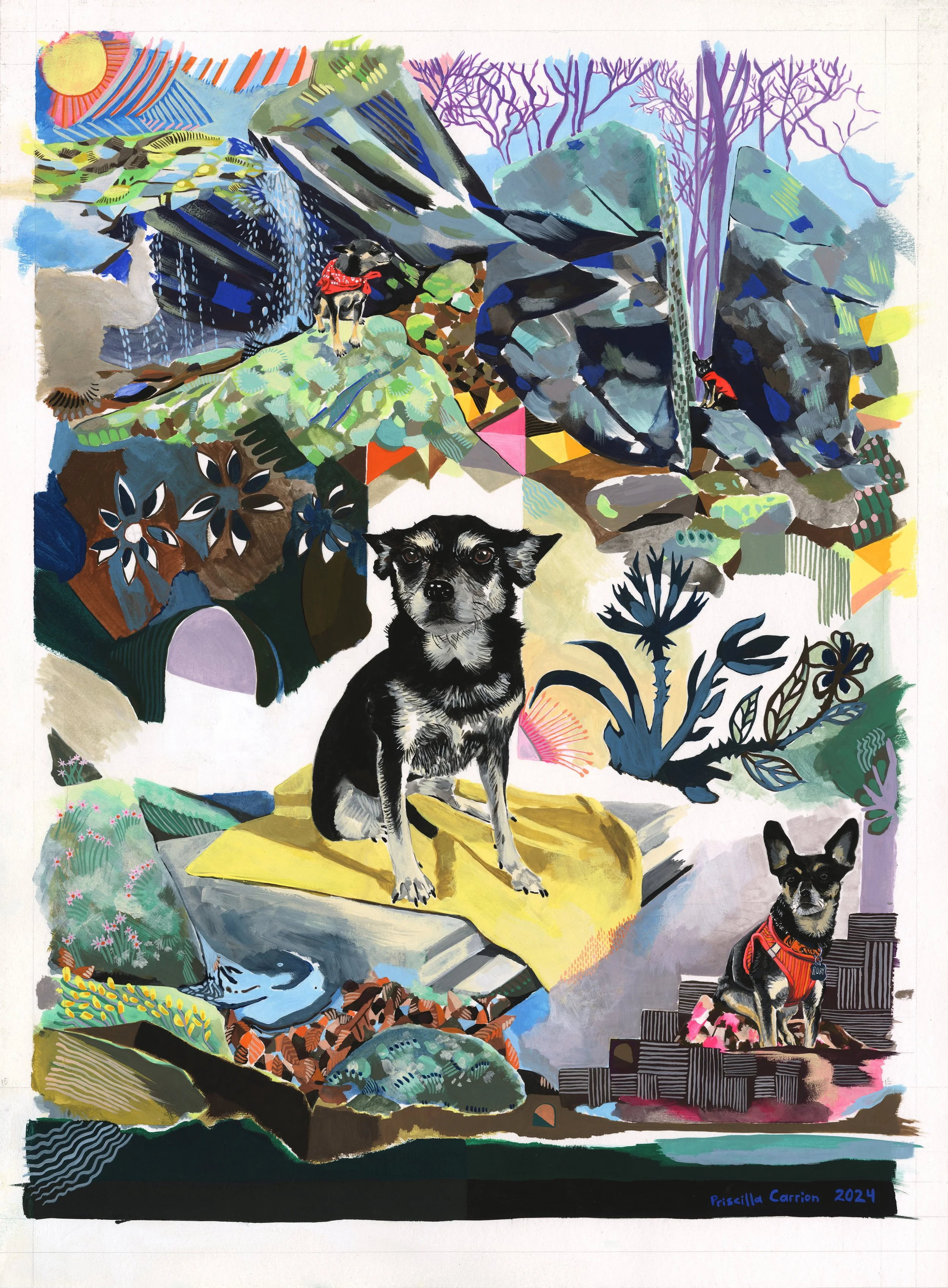 Priscilla Carrion is a multidisciplinary artist from Providence, RI. Currently, she focuses on water-based painting, portraiture, and collage from a home studio. Additionally, she seeks to serve and collaborate with both animals and their human companions.